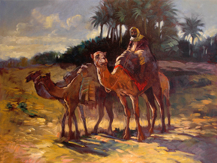 And the caravan kneeled down near the Darbas of the great Arabian desert of Abu Lala.